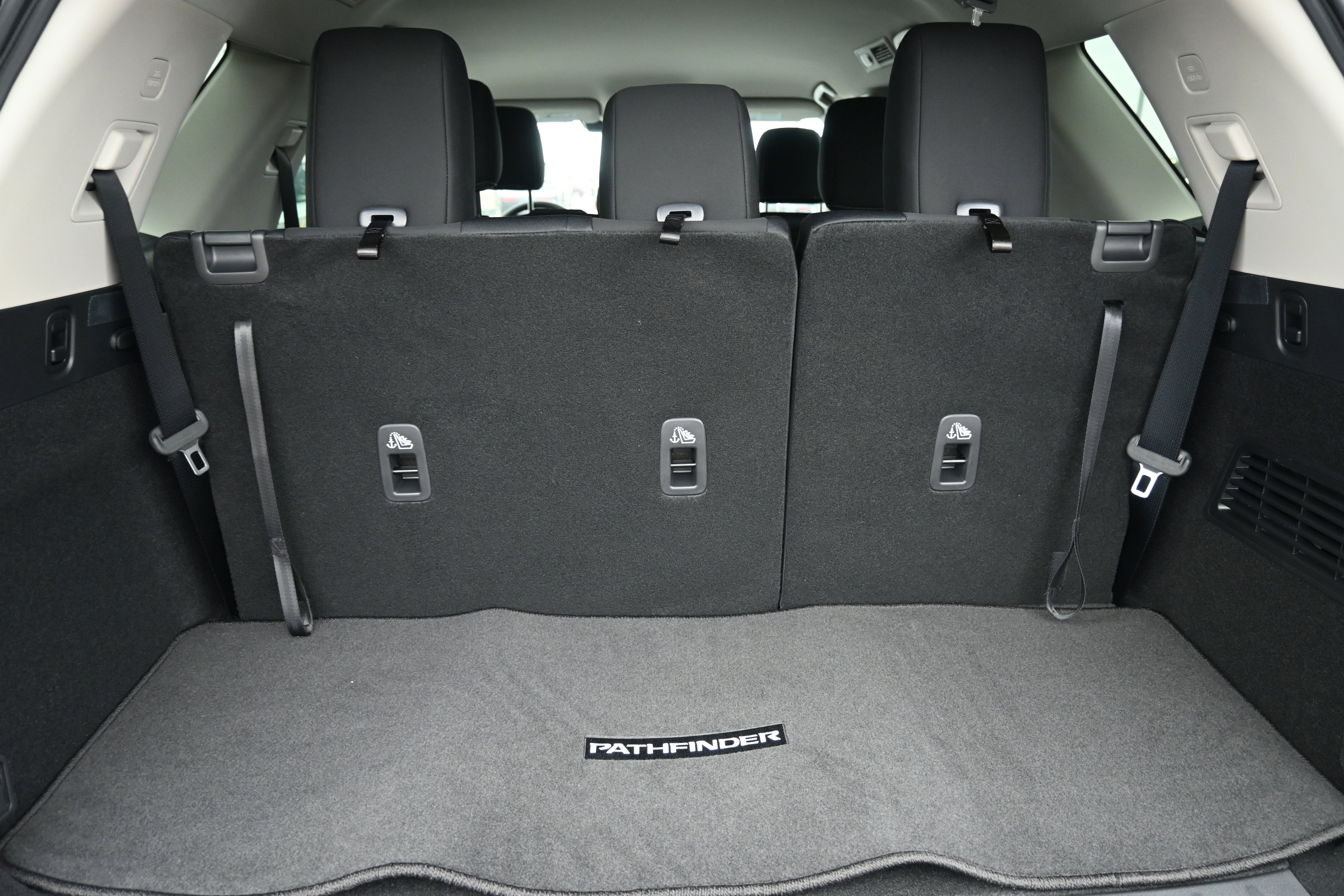 - Fixed 60-40 Bench Cloth 3rd Row Seat Front, Manual Recline, Manual Fold Into Floor, 3 Manual and Adjustable Head Restraints