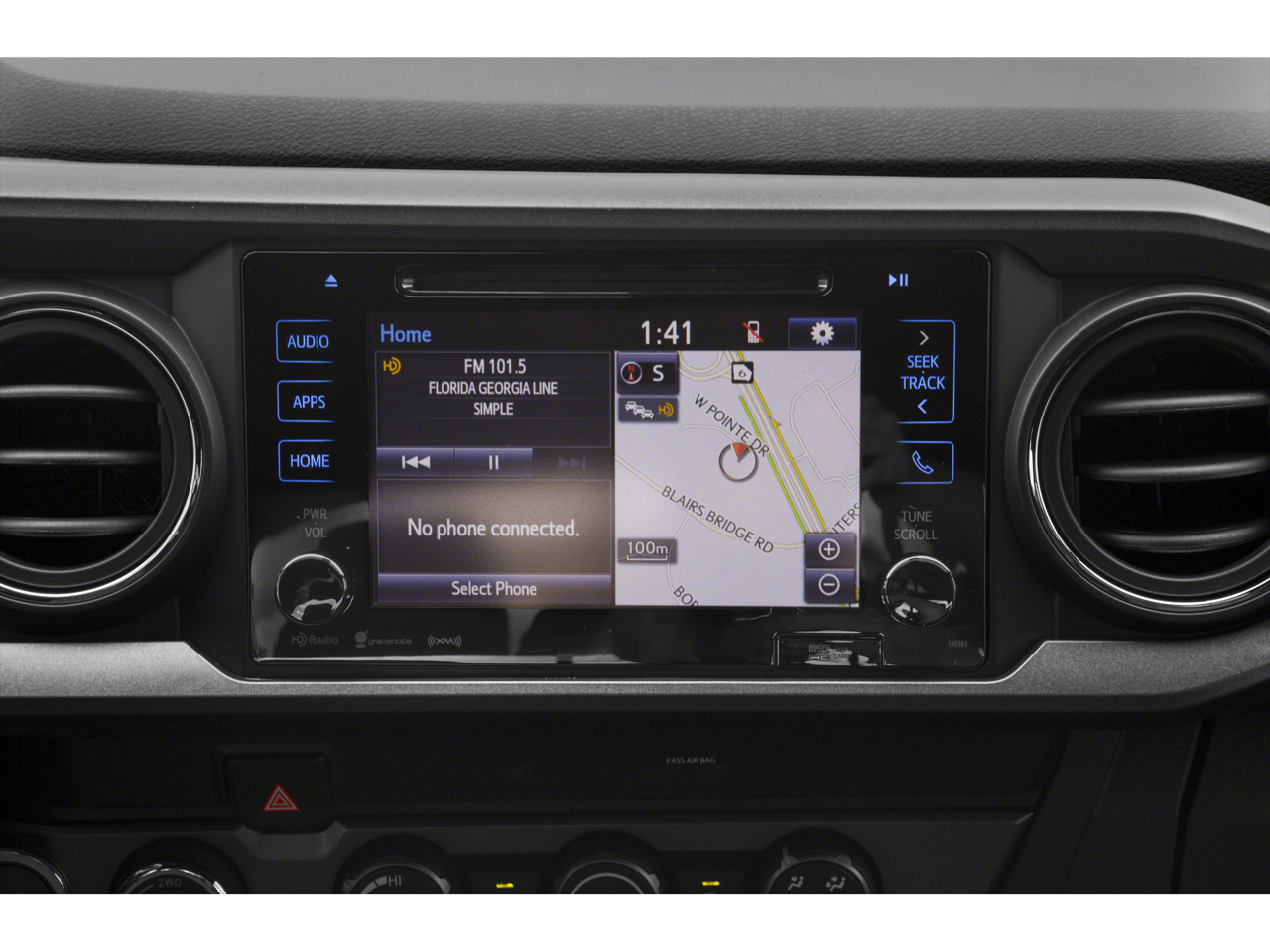 TRD Off Road Package (OC) (120V/400W Deck Mounted AC Power, Auto-Dimming Inside Rear-View Mirror w/Compass, Black Overfenders, Engine Immobilizer, LED Daytime Running Lamps, Power Sliding Rear Window w/Privacy Glass, Smart Key w/Push Button Start, Variable Intermittent Wipers, and Wide Angle Front Fog Lamps), 4WD, ABS brakes, Alloy wheels, Electronic Stability Control, Illuminated entry, Low tire pressure warning, Remote keyless entry, Traction control, 6 Speakers, Air Conditioning, All Weather Floor Liner & Door Sill Protector Pkg, AM/FM radio: SiriusXM, Anti-whiplash front head restraints, Auto High-beam Headlights, Auto-dimming Rear-View mirror, BedStep, Brake assist, Bumpers: body-color, CD player, Door Sill Protectors, Driver door bin, Dual front impact airbags, Dual front side impact airbags, Entune App Suite, Exterior Parking Camera Rear, Fabric Seat Trim (FD), Front anti-roll bar, Front Bucket Seats, Front Center Armrest, Front fog lights, Front reading lights, Front wheel independent suspension, Knee airbag, Leather Shift Knob, Occupant sensing airbag, Outside temperature display, Overhead airbag, Overhead console, Panic alarm, Passenger door bin, Power door mirrors, Power steering, Power windows, Predator Tube Steps, Radio: Entune Premium w/AM/FM/CD/Nav/App Suite, Rear step bumper, Remote Keyless Entry System, Security system, Speed control, Speed-sensing steering, Split folding rear seat, Steering wheel mounted audio controls, Tachometer, Telescoping steering wheel, Tilt steering wheel, Trip computer, Turn signal indicator mirrors, Variably intermittent wipers, and Wheels: 16" x 7" Machined Contrast Alloy.