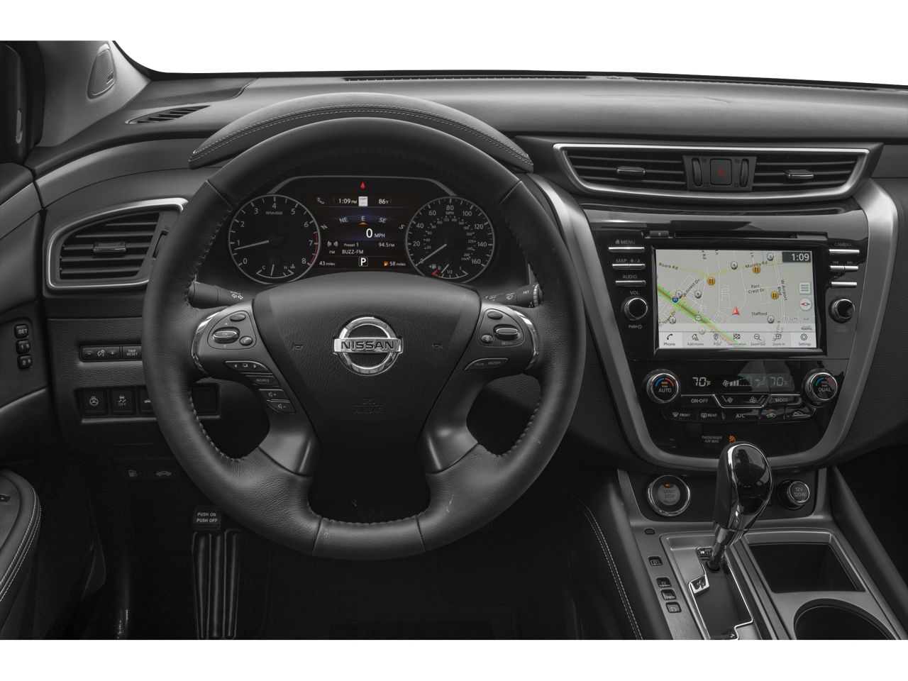 Moonroof Package (Dual-Panel Moonroof), CVT with Xtronic, AWD, 11 Speakers, 4-Wheel Disc Brakes, 4.667 Axle Ratio, ABS brakes, Air Conditioning, Alloy wheels, AM/FM radio: SiriusXM, AM/FM/CD/MP3/WMA Audio System, Auto High-beam Headlights, Auto-dimming Rear-View mirror, Automatic temperature control, Blind Spot Warning, Brake assist, Bumpers: body-color, Carpeted Floor Mats & Carpeted Cargo Mat, CD player, Child-Seat-Sensing Airbag, Compass, Delay-off headlights, Driver door bin, Driver vanity mirror, Dual front impact airbags, Dual front side impact airbags, Electronic Stability Control, Exterior Parking Camera Rear, Four wheel independent suspension, Front anti-roll bar, Front Bucket Seats, Front Center Armrest, Front dual zone A/C, Front fog lights, Front reading lights, Fully automatic headlights, Garage door transmitter: HomeLink, Heated door mirrors, Heated Front Bucket Seats, Heated front seats, Heated rear seats, Heated steering wheel, Illuminated entry, Knee airbag, Leather Shift Knob, Leather-Appointed Seat Trim, Low tire pressure warning, Memory seat, Navigation system: NissanConnect Navigation, NissanConnect featuring Apple CarPlay and Android Auto, Occupant sensing airbag, Outside temperature display, Overhead airbag, Overhead console, Panic alarm, Passenger door bin, Passenger vanity mirror, Power door mirrors, Power driver seat, Power Liftgate, Power passenger seat, Power steering, Power windows, Radio data system, Rear anti-roll bar, Rear reading lights, Rear seat center armrest, Rear side impact airbag, Rear window defroster, Rear window wiper, Remote keyless entry, Roof rack: rails only, Security system, Speed control, Speed-sensing steering, Speed-Sensitive Wipers, Splash Guards, Split folding rear seat, Spoiler, Steering wheel mounted audio controls, Tachometer, Telescoping steering wheel, Tilt steering wheel, Traction control, Trip computer, Turn signal indicator mirrors, Variably intermittent wipers, and Wheels: 20" Machined Aluminum-Alloy.