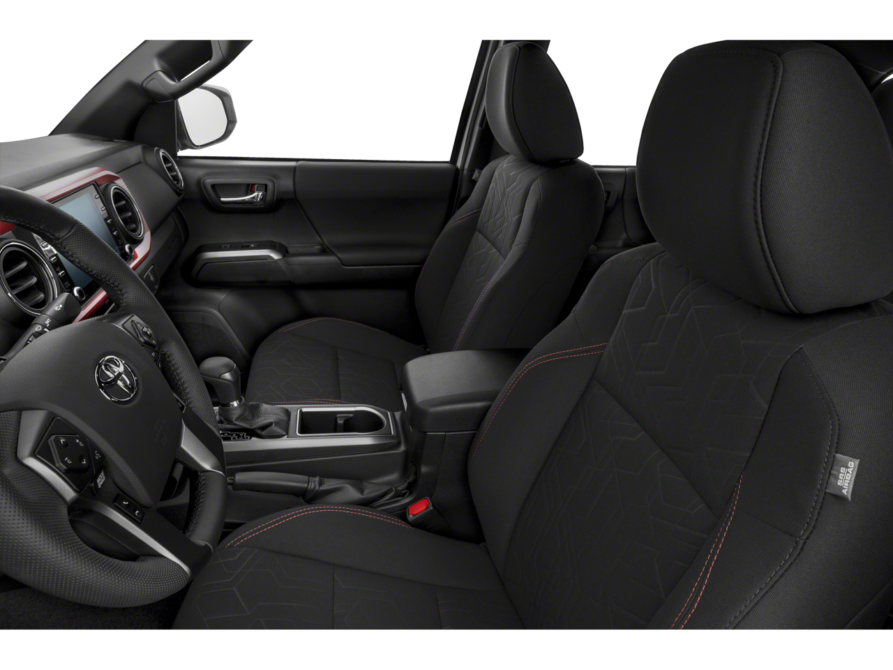 TRD Sport Package (120V/400W Deck Mounted AC Power, Color-Keyed Overfenders, Engine Immobilizer, Power Sliding Rear Window w/Privacy Glass, and Smart Key w/Push Button Start), 4WD, 6 Speakers, ABS brakes, Air Conditioning, All Weather Floor Liner & Door Sill Protector Pkg, Alloy wheels, AM/FM radio: SiriusXM, Anti-whiplash front head restraints, Apple CarPlay/Android Auto, Auto High-beam Headlights, Auto-dimming Rear-View mirror, Axle Ratio: 3.91, Bed Lighting Kit, Brake assist, Bumpers: body-color, Door Sill Protectors, Driver door bin, Dual front impact airbags, Dual front side impact airbags, Electronic Stability Control, Emergency communication system: Safety Connect with 1-year trial, Exterior Parking Camera Rear, Fabric Seat Trim (FD), Front anti-roll bar, Front Bucket Seats, Front Center Armrest, Front fog lights, Front reading lights, Front wheel independent suspension, Heated door mirrors, Illuminated entry, Knee airbag, Leather Shift Knob, LED Daytime Running Lights & Fog Lights, Low tire pressure warning, Mudguards, Occupant sensing airbag, Outside temperature display, Overhead airbag, Overhead console, Panic alarm, Passenger door bin, Power door mirrors, Power driver seat, Power steering, Power windows, Radio: AM/FM/HD Radio, Rear step bumper, Remote keyless entry, Security system, Speed control, Speed-sensing steering, Split folding rear seat, Steering wheel mounted audio controls, Tachometer, Telescoping steering wheel, Tilt steering wheel, Traction control, Trip computer, Turn signal indicator mirrors, Variably intermittent wipers, and Wheels: 17" x 7.5J Machined Alloy.