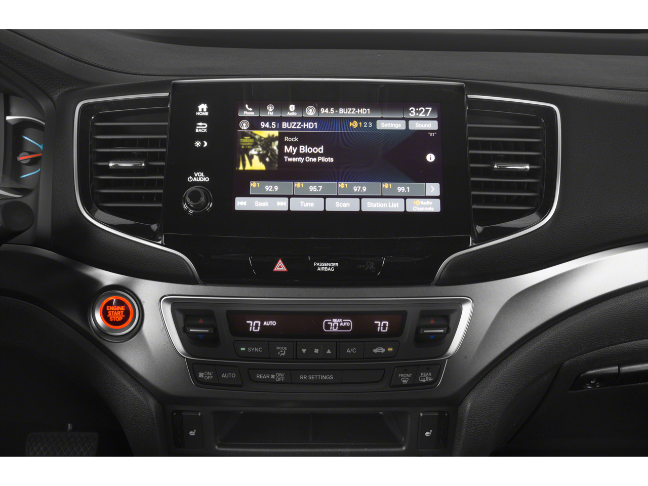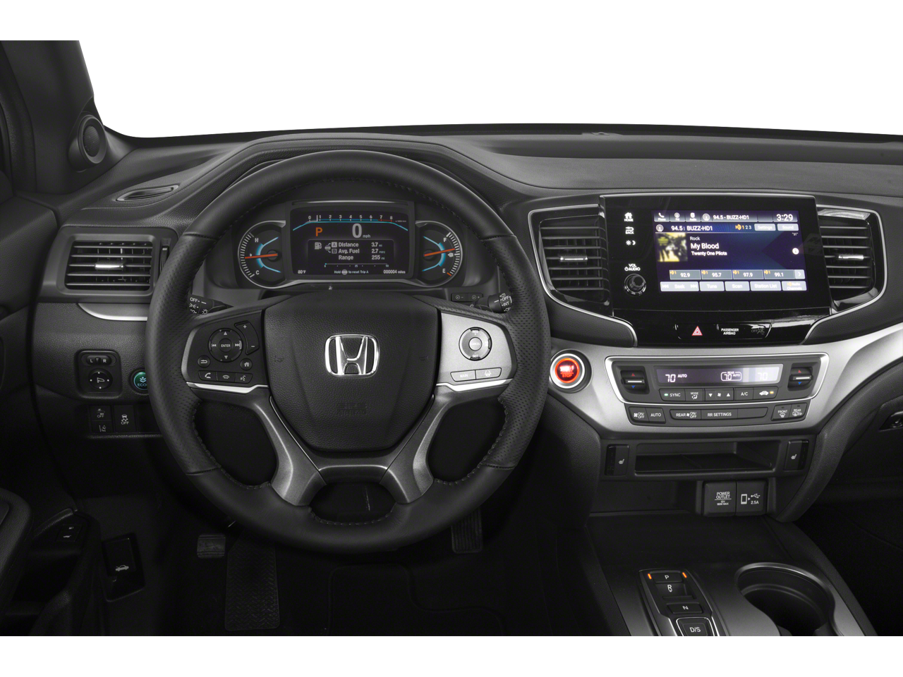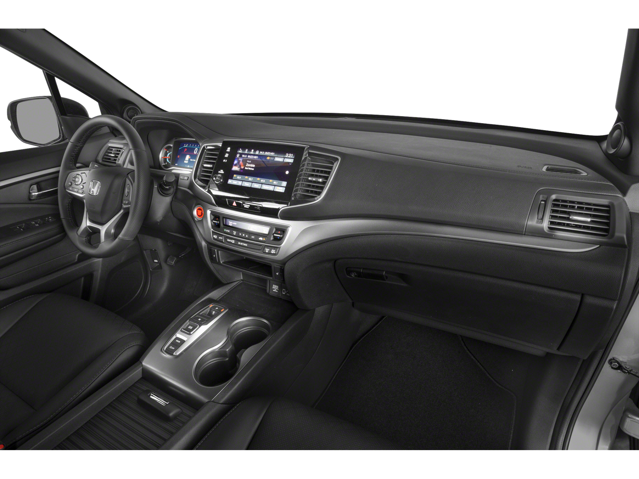 4-Wheel Disc Brakes, 4.334 Axle Ratio, 7 Speakers, A/V remote: CabinControl, ABS brakes, Air Conditioning, Alloy wheels, AM/FM radio: SiriusXM, Apple CarPlay/Android Auto, Auto High-beam Headlights, Auto-dimming Rear-View mirror, Automatic temperature control, Blind Spot Information (BSI) System warning, Brake assist, Bumpers: body-color, Delay-off headlights, Driver door bin, Driver vanity mirror, Driver's Seat Mounted Armrest, Dual front impact airbags, Dual front side impact airbags, Electronic Stability Control, Emergency communication system: HondaLink Assist, Exterior Parking Camera Rear, Forward collision: Collision Mitigation Braking System (CMBS) + FCW mitigation, Four wheel independent suspension, Front anti-roll bar, Front Bucket Seats, Front Center Armrest, Front dual zone A/C, Front fog lights, Front reading lights, Fully automatic headlights, Garage door transmitter: HomeLink, Heated door mirrors, Heated Front Bucket Seats, Heated front seats, Illuminated entry, Lane departure: Lane Keeping Assist System (LKAS) active, Leather-Trimmed Seats, Low tire pressure warning, Memory seat, Occupant sensing airbag, Outside temperature display, Overhead airbag, Overhead console, Panic alarm, Passenger door bin, Passenger seat mounted armrest, Passenger vanity mirror, Power door mirrors, Power driver seat, Power Liftgate, Power moonroof, Power passenger seat, Power steering, Power windows, Radio data system, Radio: 215-Watt Audio System w/7 Speakers, Rear air conditioning, Rear anti-roll bar, Rear reading lights, Rear seat center armrest, Rear window defroster, Rear window wiper, Remote keyless entry, Security system, Speed control, Speed-sensing steering, Split folding rear seat, Spoiler, Steering wheel mounted audio controls, Tachometer, Telescoping steering wheel, Tilt steering wheel, Traction control, Trip computer, Turn signal indicator mirrors, Variably intermittent wipers, and Wheels: 20" Split-Spoke Pewter Gray Alloy.
