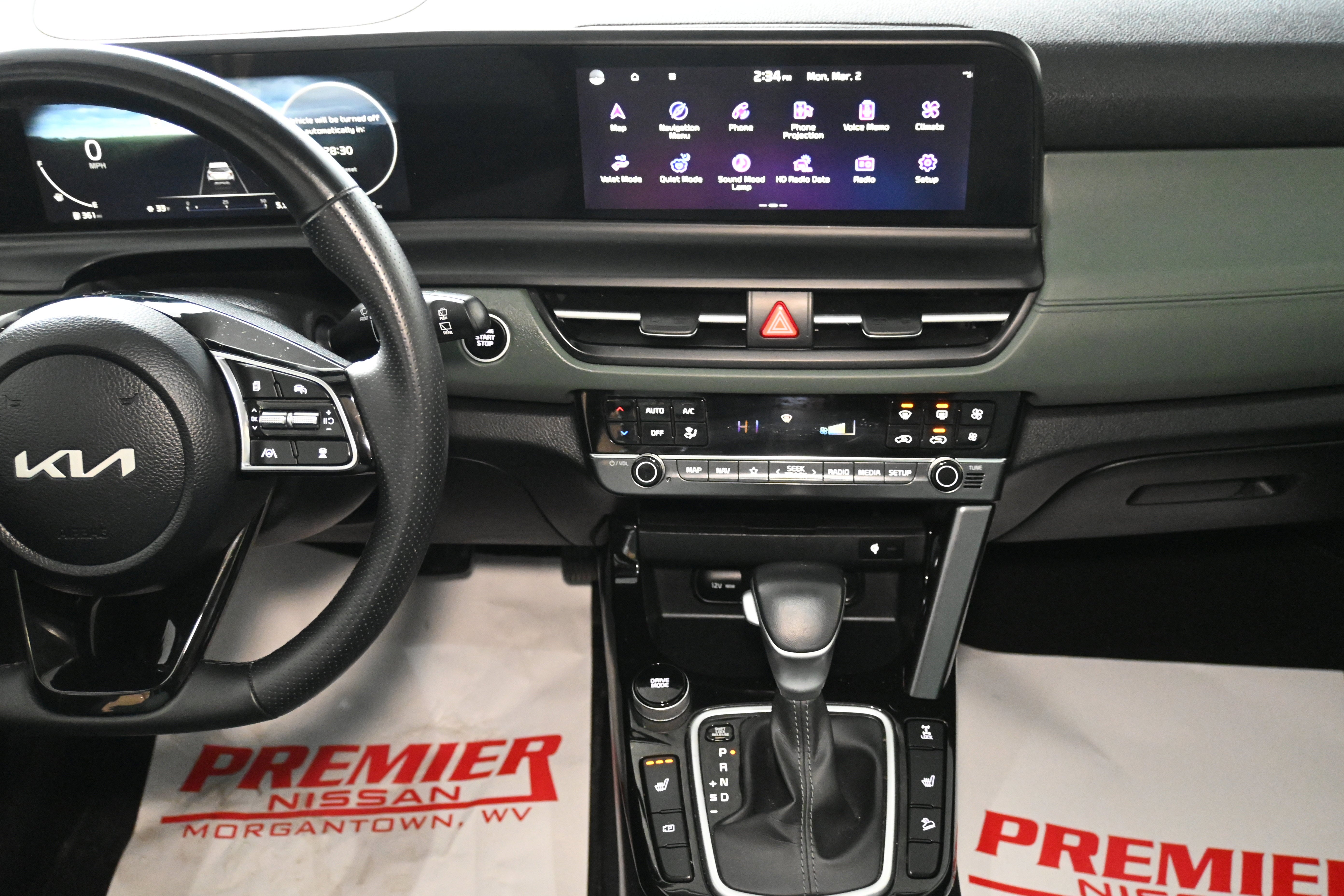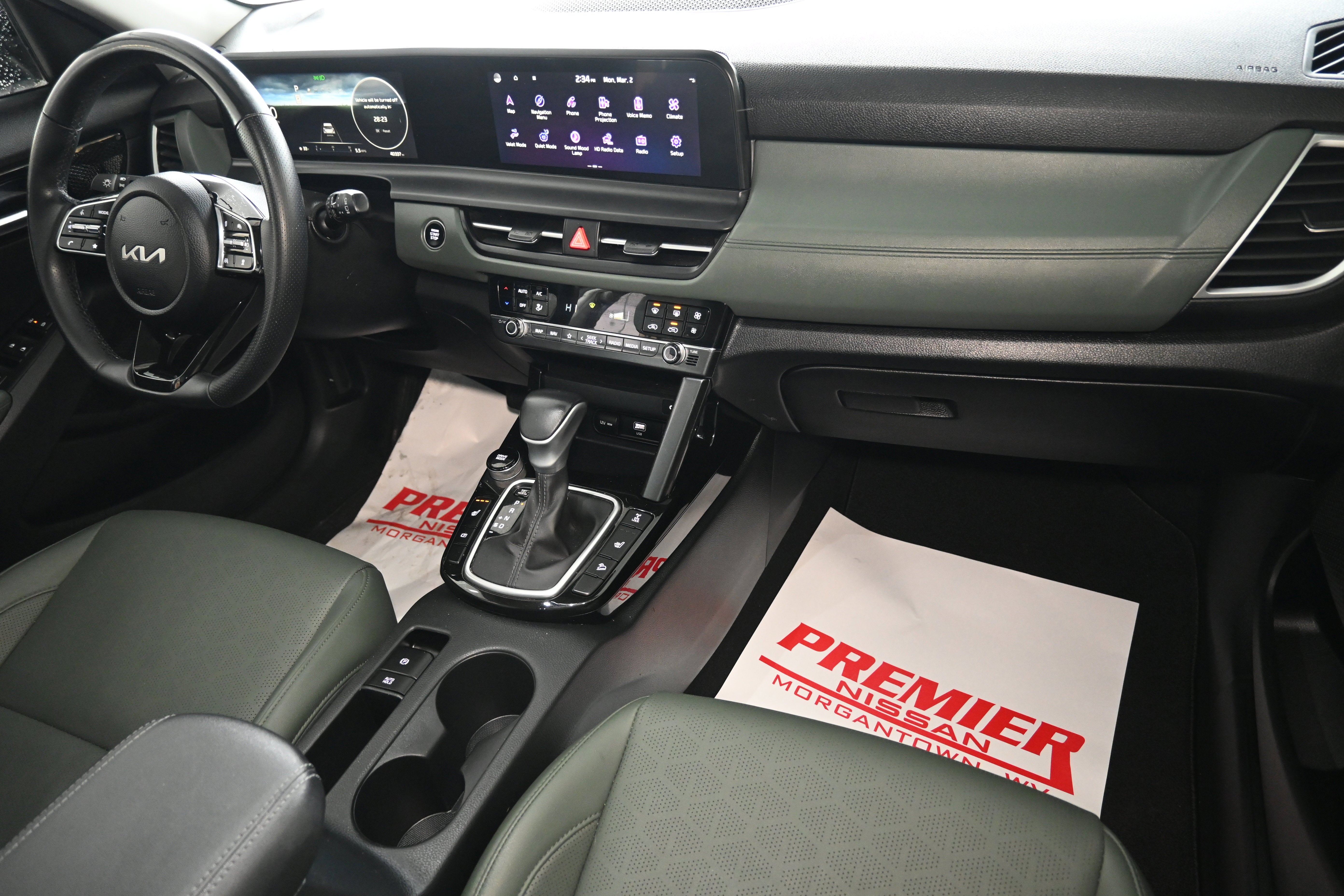 Midnight Green Interior Color Package, 3.510 Axle Ratio, 4-Wheel Disc Brakes, 8 Speakers, ABS brakes, Air Conditioning, Alloy wheels, AM/FM radio: SiriusXM, Apple CarPlay & Android Auto, Auto High-beam Headlights, Auto-dimming Rear-View mirror, Automatic temperature control, Brake assist, Bumpers: body-color, Carpet Floor Mats, Delay-off headlights, Driver door bin, Driver vanity mirror, Dual front impact airbags, Dual front side impact airbags, Electronic Stability Control, Emergency communication system: 911 Connect, Exterior Parking Camera Rear, Four wheel independent suspension, Front anti-roll bar, Front Bucket Seats, Front Center Armrest, Front fog lights, Front reading lights, Fully automatic headlights, Heated door mirrors, Heated Front Bucket Seats, Heated front seats, Illuminated entry, Leather Shift Knob, Leather steering wheel, Low tire pressure warning, Mud Guards, Navigation System, Occupant sensing airbag, Outside temperature display, Overhead airbag, Overhead console, Panic alarm, Passenger door bin, Passenger vanity mirror, Power door mirrors, Power driver seat, Power steering, Power windows, Radio: AM/FM/HD/Satellite Display System w/Navigation, Rear seat center armrest, Rear window defroster, Rear window wiper, Remote keyless entry, Security system, Sofino Premium Leatherette Seat Trim, Speed control, Speed-sensing steering, Split folding rear seat, Spoiler, Sport steering wheel, Steering wheel mounted audio controls, Tachometer, Telescoping steering wheel, Tilt steering wheel, Traction control, Trip computer, Turn signal indicator mirrors, Variably intermittent wipers, and Wheels: 18" Alloy w/Machined Finish.