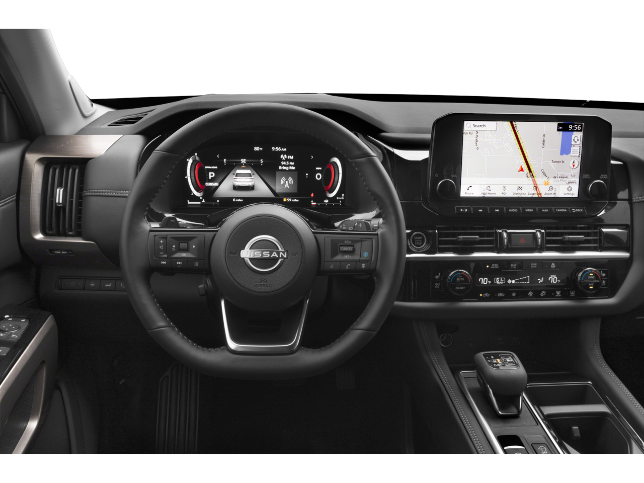 Cargo Package (Cargo Area Protector, Cargo Net, and First Aid Kit), Nissan Certified Certified, 4WD, 13 Speakers, 3rd row seats: bench, 4-Wheel Disc Brakes, ABS brakes, Air Conditioning, Alloy wheels, AM/FM radio: SiriusXM, Auto High-beam Headlights, Auto tilt-away steering wheel, Auto-dimming Rear-View mirror, Automatic temperature control, Axle Ratio: 4.334, Bench Seat Carpeted Floor Mats (Set of 4), Black Splash Guards (Set of 4), Bodyside moldings, Bose Premium Audio System, Brake assist, Bumpers: body-color, Cross Bars, Delay-off headlights, Driver door bin, Driver vanity mirror, Dual front impact airbags, Dual front side impact airbags, Electronic Stability Control, Emergency communication system, Exterior Parking Camera Rear, Four wheel independent suspension, Front anti-roll bar, Front Bucket Seats, Front Center Armrest, Front dual zone A/C, Front reading lights, Fully automatic headlights, Garage door transmitter: HomeLink, Heads-Up Display, Heated & Cooled Front Bucket Seats, Heated door mirrors, Heated front seats, Heated rear seats, Heated steering wheel, Illuminated entry, Knee airbag, Leather steering wheel, Low tire pressure warning, Memory seat, Navigation system: NissanConnect with Navigation and Services, Nissan USB Charging Cable Set, NissanConnect featuring Apple CarPlay and Android Auto, NissanConnect w/Navigation & Services, Occupant sensing airbag, Outside temperature display, Overhead airbag, Overhead console, Panic alarm, Passenger door bin, Passenger vanity mirror, Power door mirrors, Power driver seat, Power Liftgate, Power moonroof, Power passenger seat, Power steering, Power windows, Radio data system, Radio: AM/FM Audio System, Rain sensing wipers, Rear air conditioning, Rear anti-roll bar, Rear reading lights, Rear seat center armrest, Rear side impact airbag, Rear window defroster, Rear window wiper, Reclining 3rd row seat, Remote keyless entry, Security system, Semi-Aniline Leather-Appointed Seating Surfaces, Speed control, Speed-sensing steering, Speed-Sensitive Wipers, Split folding rear seat, Spoiler, Steering wheel memory, Steering wheel mounted audio controls, Tachometer, Telescoping steering wheel, Tilt steering wheel, Traction control, Trip computer, Turn signal indicator mirrors, Variably intermittent wipers, Ventilated front seats, and Wheels: 20" x 8J Machined Alloy.